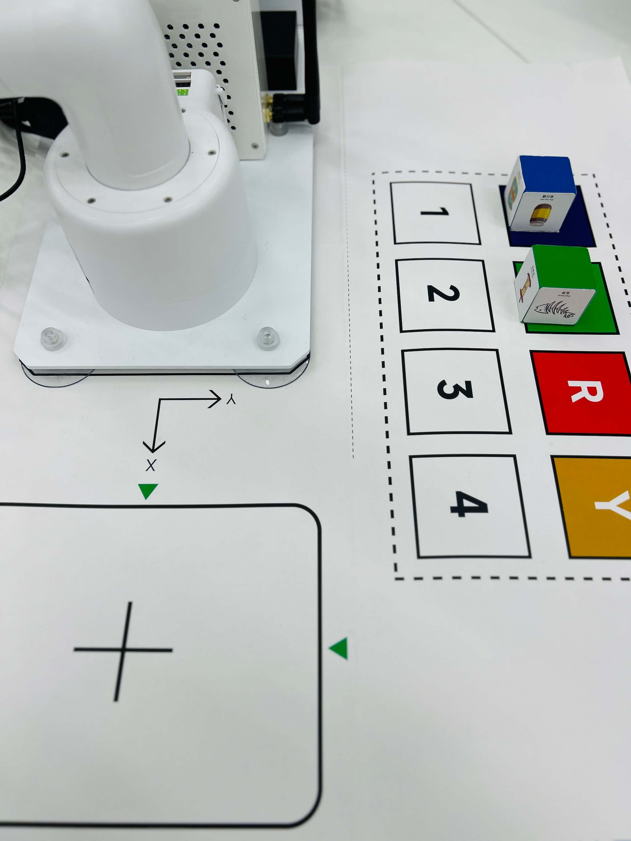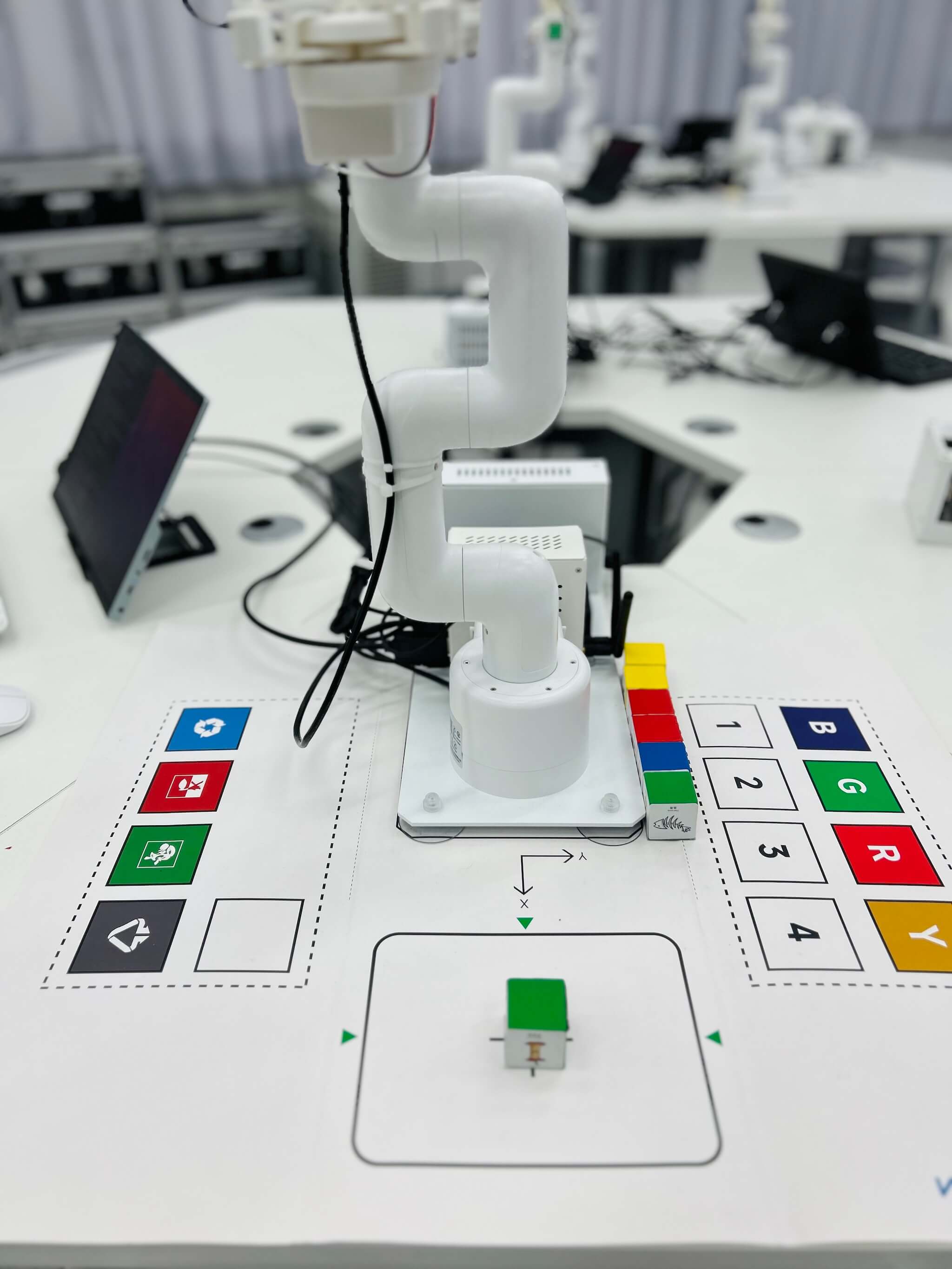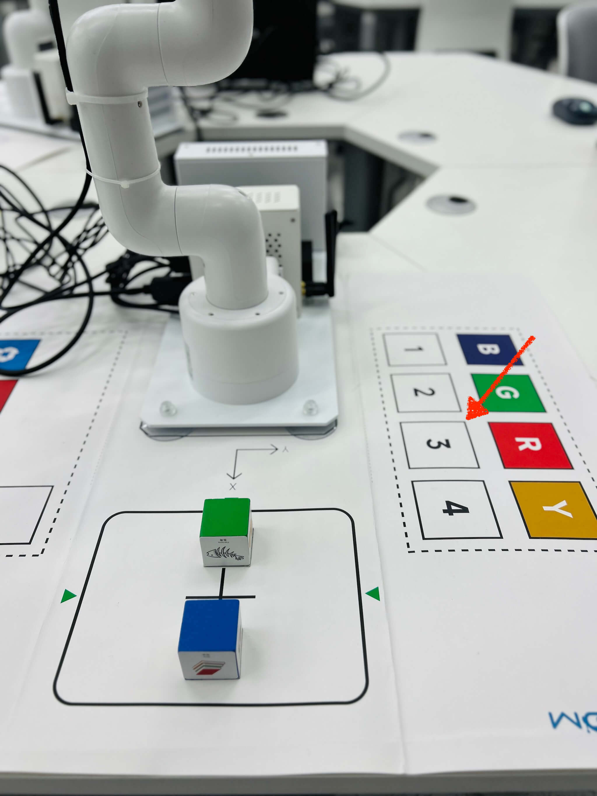 ✅ 建议:机械臂抓取时如果不大准确,可用手微微移动积木以辅助。(也可通过修改样例程序的配置文件来实现)