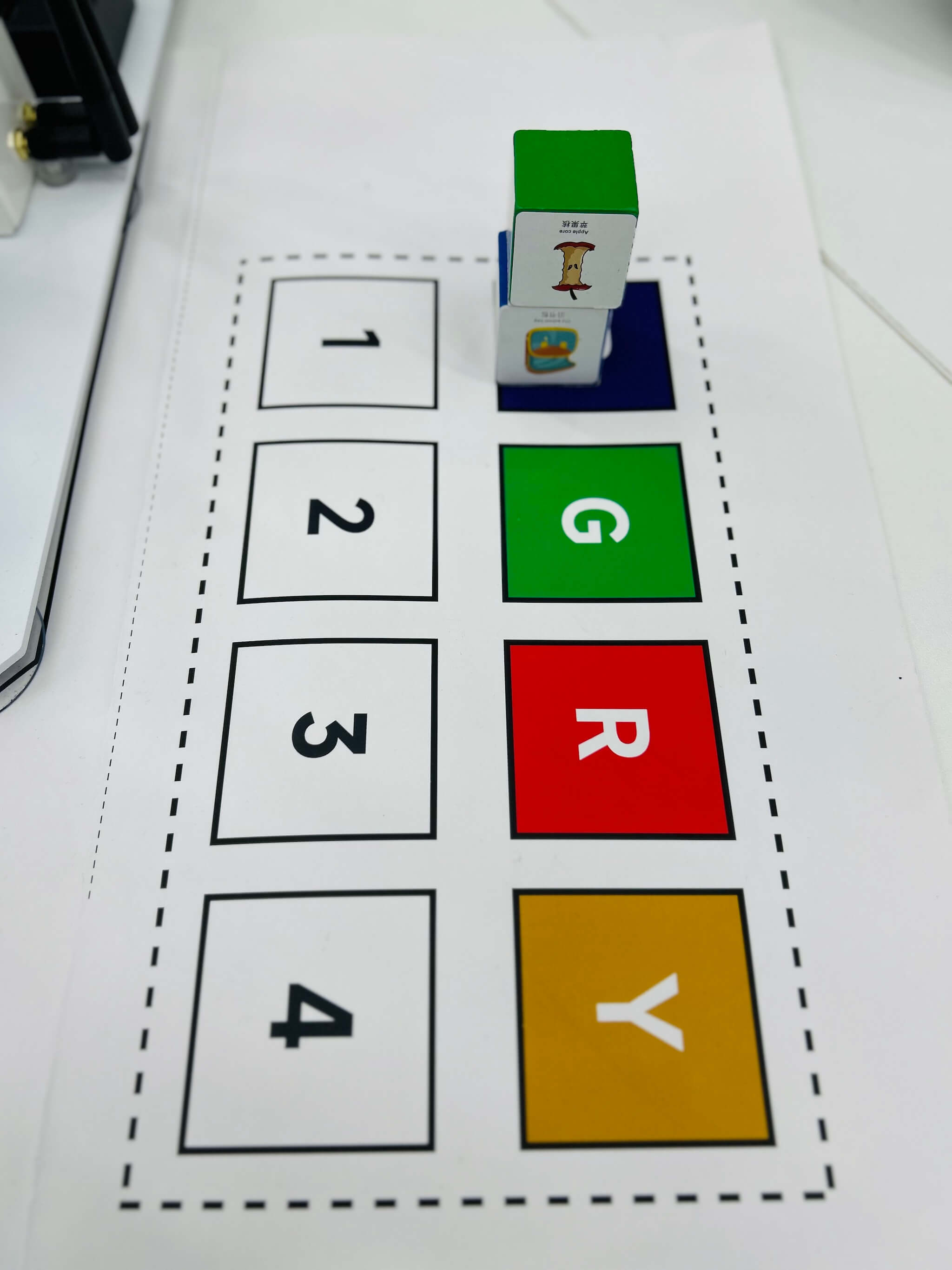 🚫 禁止:不要撕开积木上的贴纸。否则容易机械臂无法识别积木造成图纸破损。